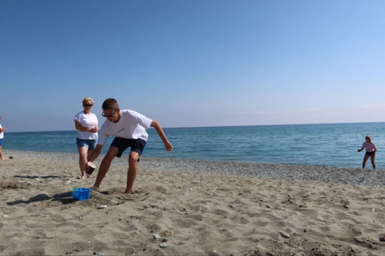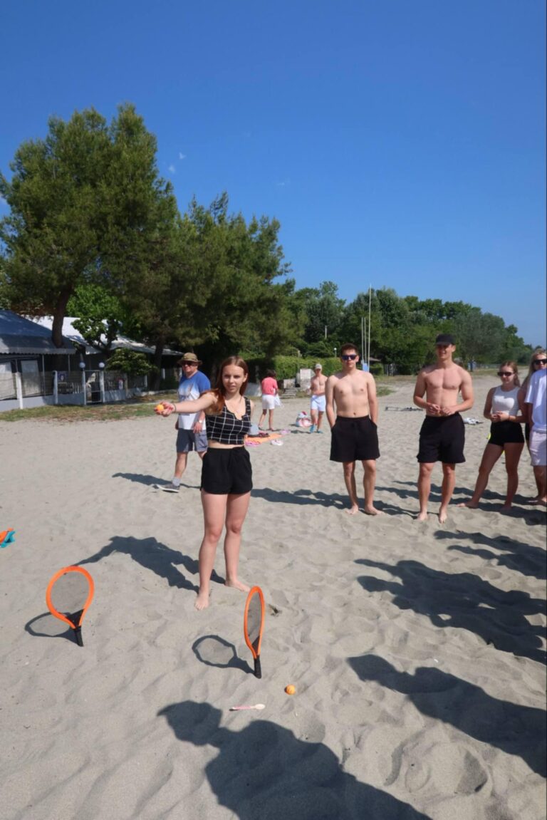 Nasz ostatni dzień w Grecji aktywnie rozpoczęliśmy igrzyskami olimpijskimi na plaży. Byliśmy podzieleni na cztery zespoły, tak aby każdy z uczestników miał szansę wykazać się swoją zręcznością i współpracą przy zbieraniu punktów dla drużyny. W programie znalazły się konkurencje takie jak: rzut kamieniem w okrąg, sztafeta Posejdona, zbijak, strzelanie do celu, bieganie z piłeczką na łyżce oraz piłka pomiędzy brzuchami, wymagająca współpracy i poczucia humoru. Wydarzenie zakończyło się wręczeniem symbolicznych nagród zwycięzcom i wspólną integracją.