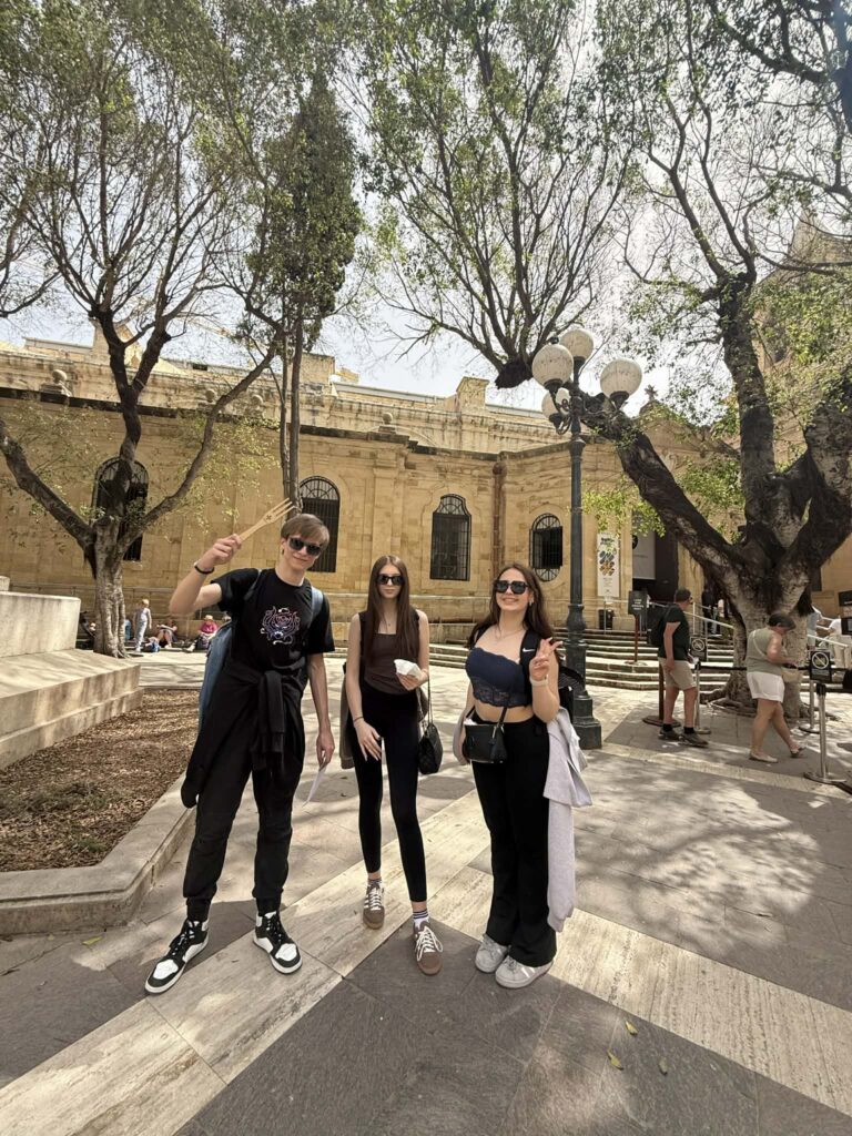 Pierwszy dzień naszej wycieczki szkolnej na Maltę rozpoczął się bardzo wcześnie – od przelotu samolotem na tę piękną wyspę. Dla części uczestników był to wyjątkowo emocjonujący moment, ponieważ był to ich pierwszy lot w życiu.